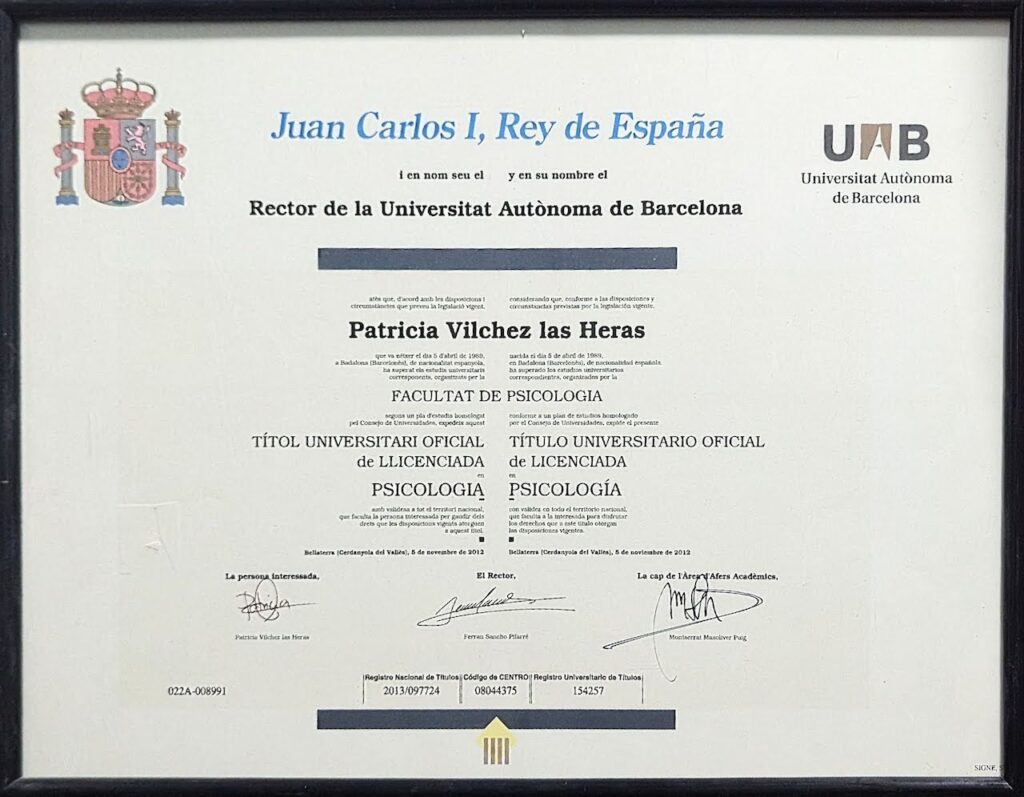 - Licenciada en Psicología, Universitat Autònoma de Barcelona, 2012